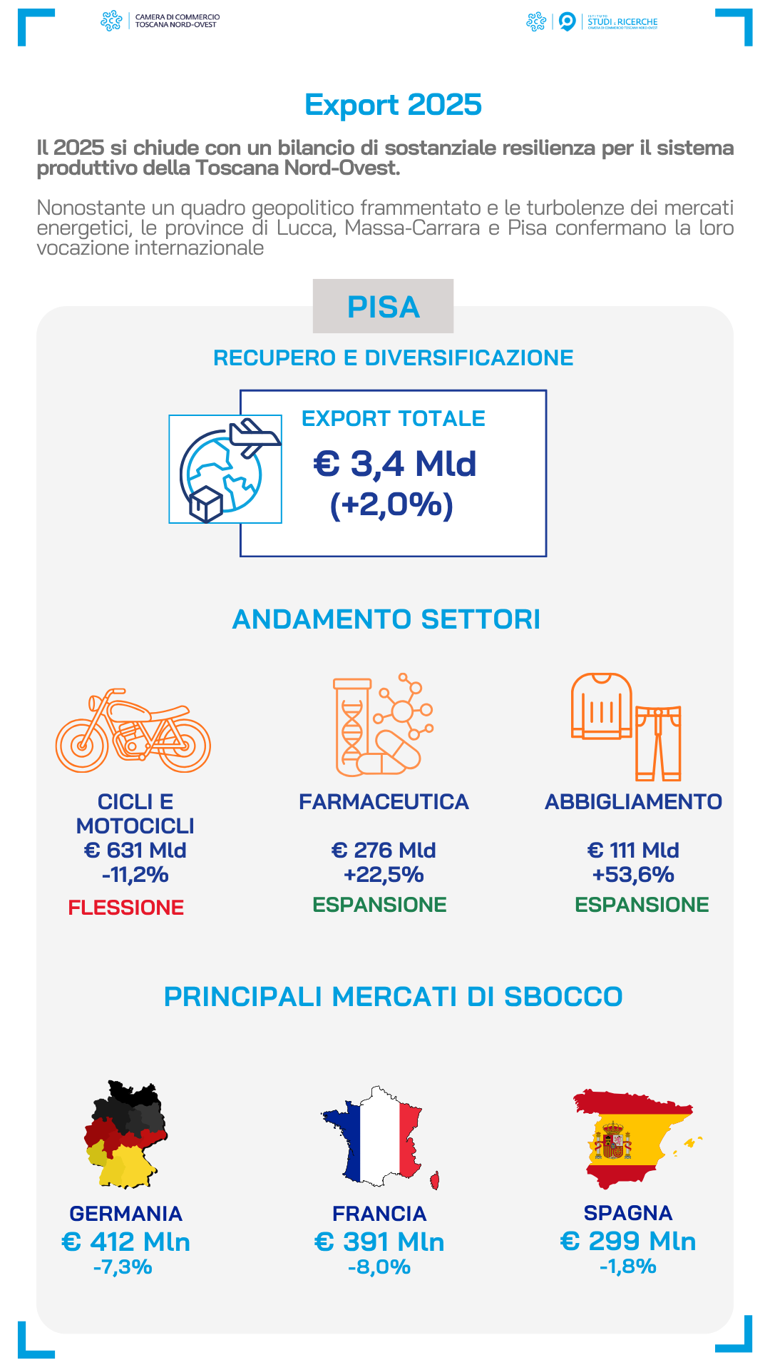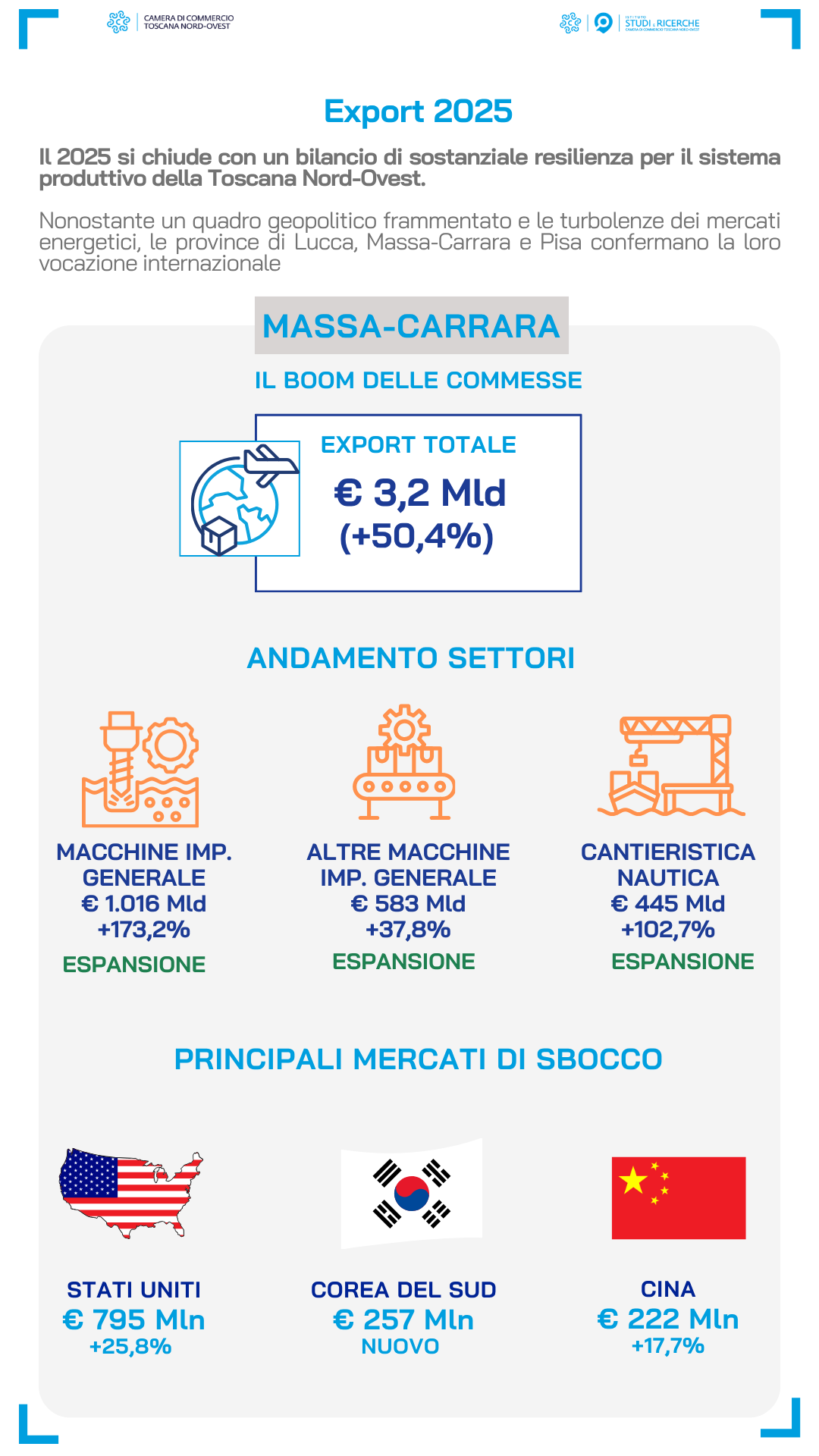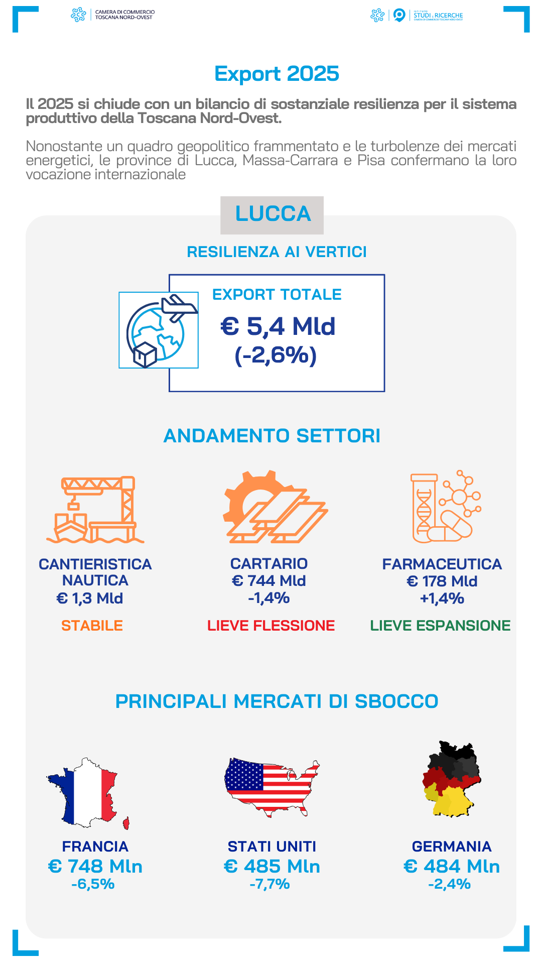 | Cresce Massa-Carrara, Lucca in lieve calo ma su livelli record, Pisa in ripresa: il 2025 dell’export